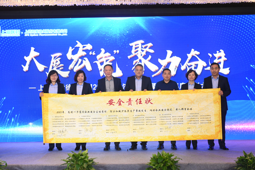 为落实安全生产工作,实现高质量发展目标,负责质量、采购、信息、安全、员工等工作的分管领导共同签订安全责任状。
