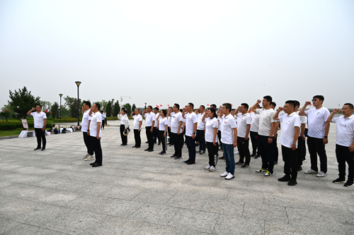 为缅怀英雄,勿忘国耻,全体党员怀着沉重的心情向铁道游击队纪念碑敬献花篮、默哀致敬,并在纪念碑下重温入党誓词:“我志愿加入中国共产党,拥护党的纲领,遵守党的章程…” ,一声声坚定洪亮的宣誓,是上药徐州党员同志对党和人民作出的庄严承诺,也是对革命精神生生不息的红色传承。